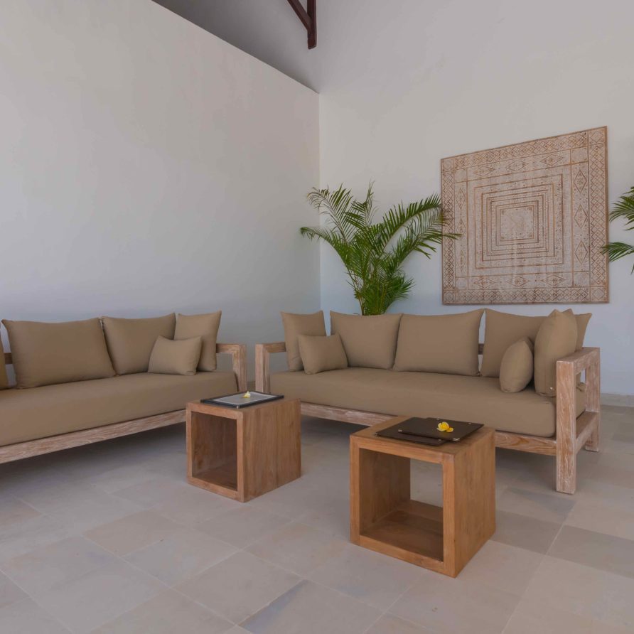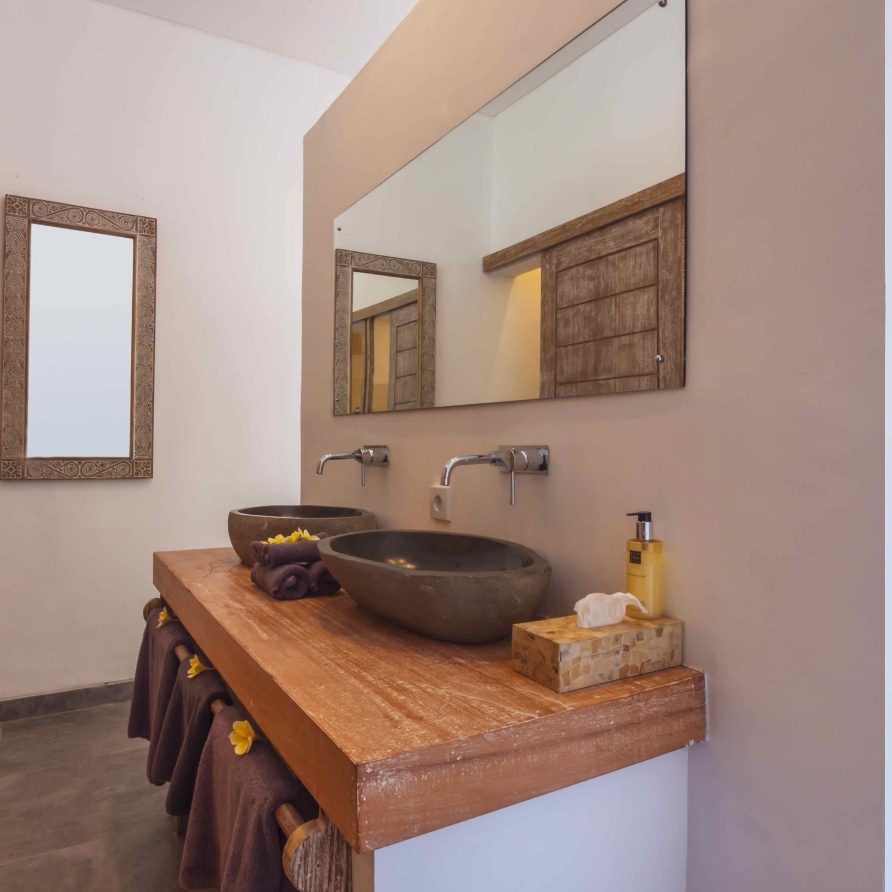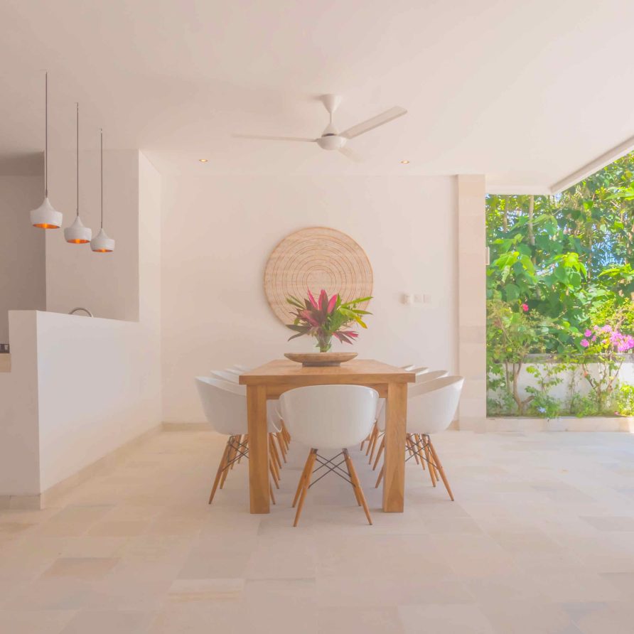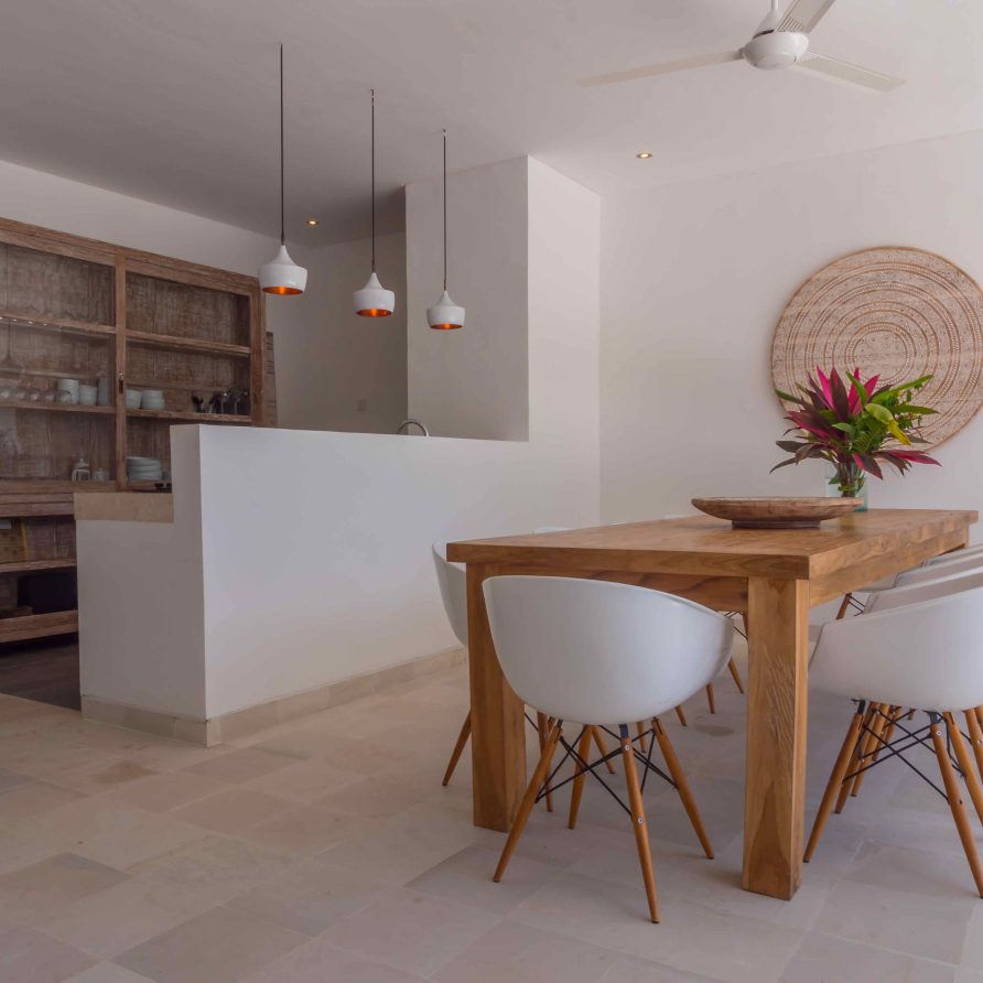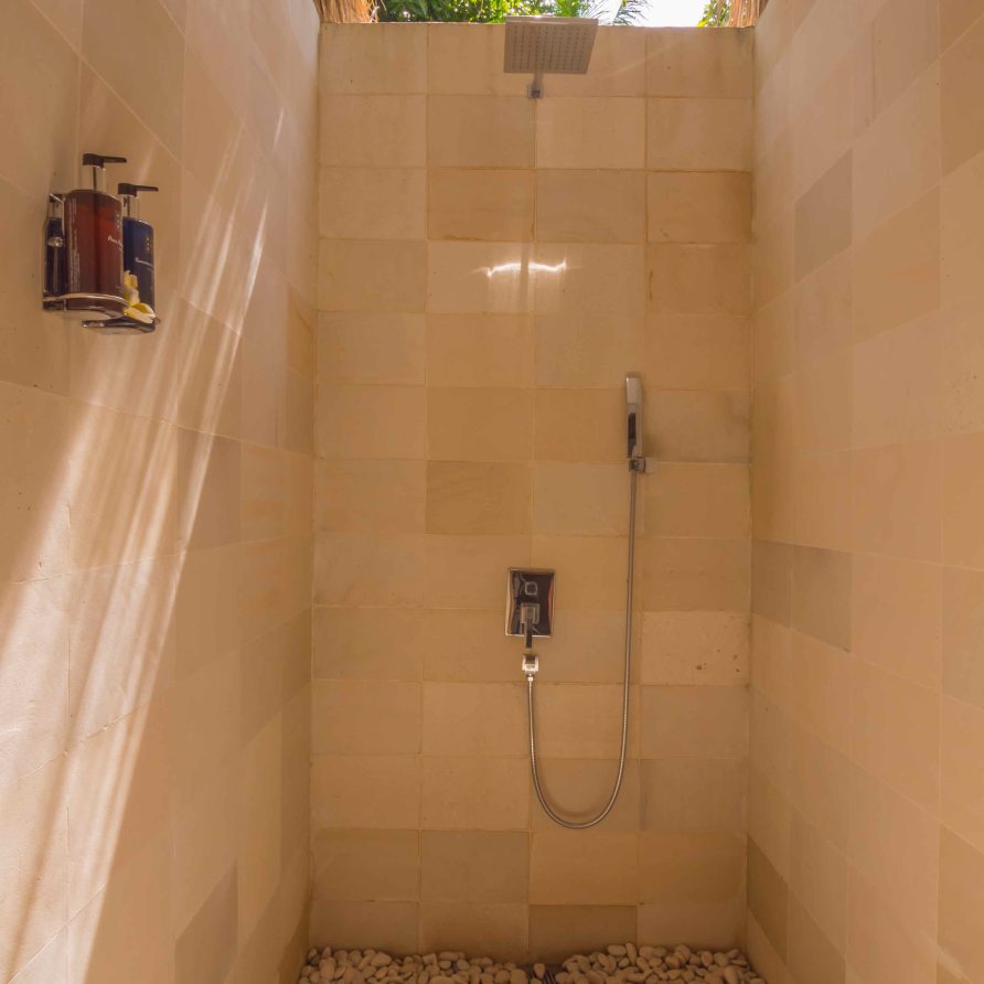 All bathrooms have a double sink, toilet, and shower. Given Baliβs wonderful weather, youβll likely spend most of your time outside. The spacious 100 mΒ² shaded terrace with a long dining table and a lounge area is a lovely place to relax. The open-plan living area and fully equipped kitchen provide a perfect blend of comfort and modern amenities.