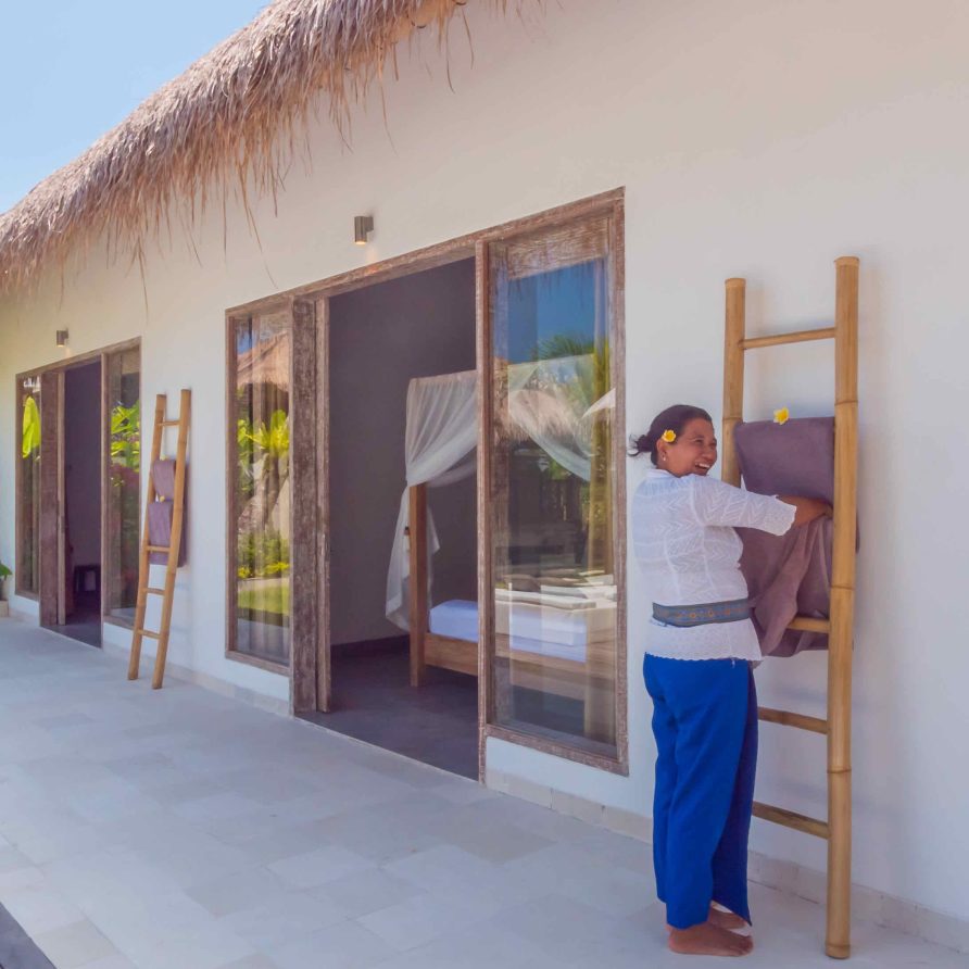 During your stay at Villa Hidden Jewel, you will be cared for full-time by dedicated staff. The friendly ladies, Ayu and Wayan, handle the villaβs cleaning every day, do the shopping, and can prepare meals for you. This is all included in the rental price. Our gardener, Ketut, ensures that the garden is immaculate and the pool is cleaned daily. While Bali is generally safe, there is security present to ensure peace of mind during the nights.