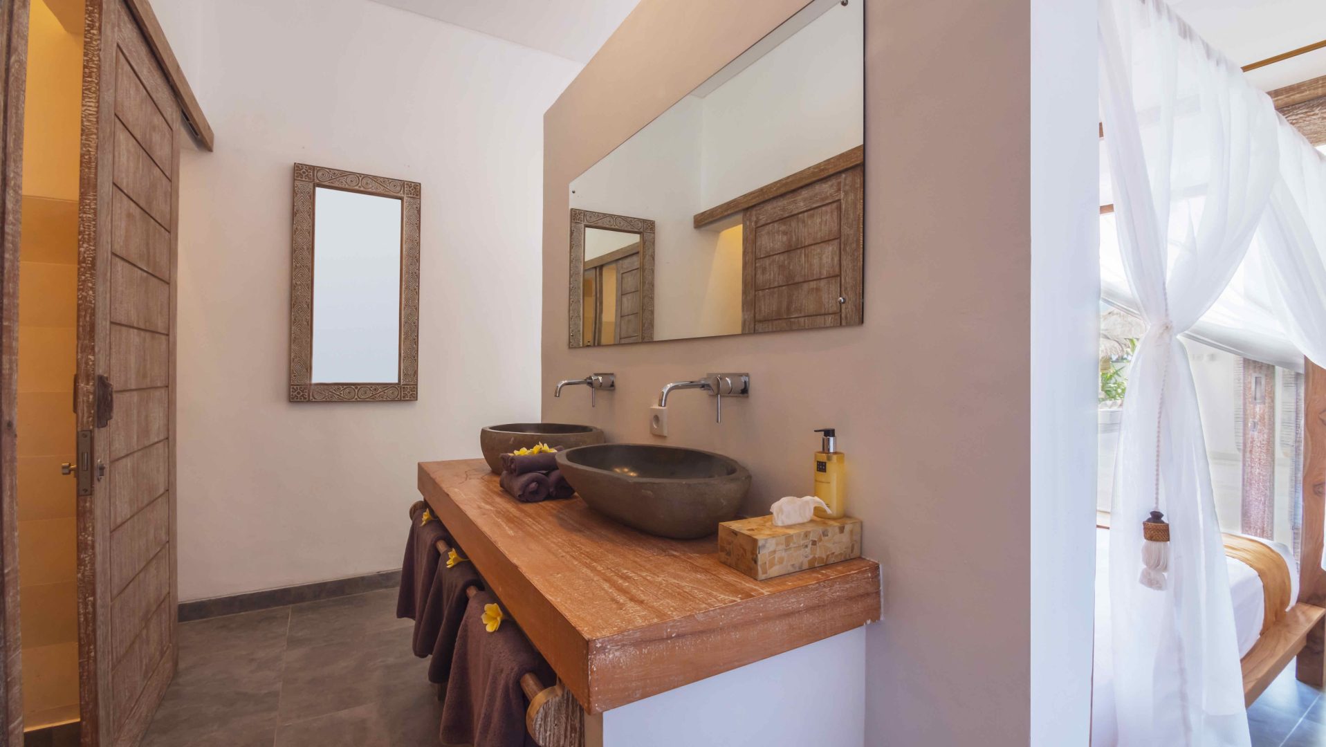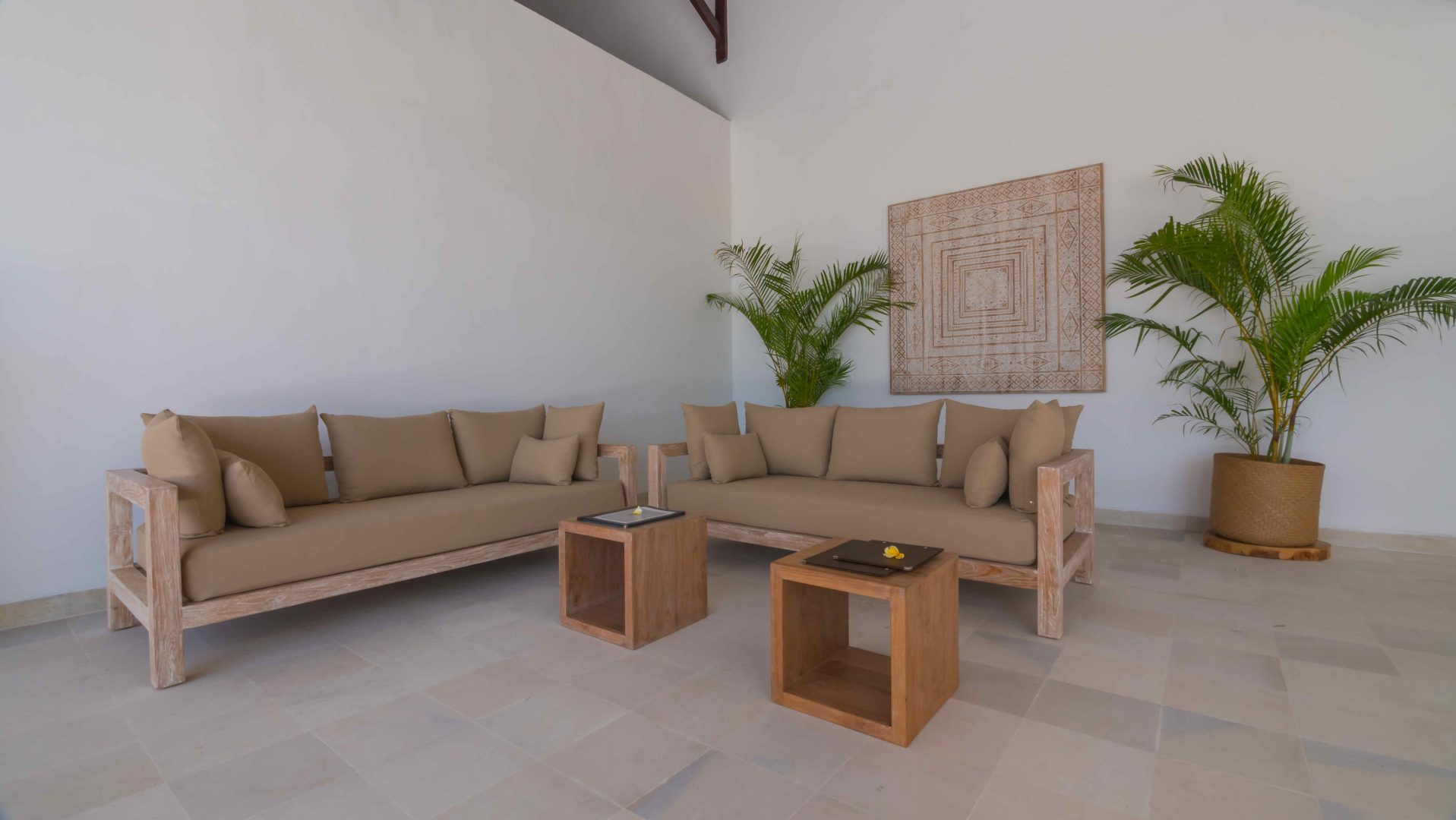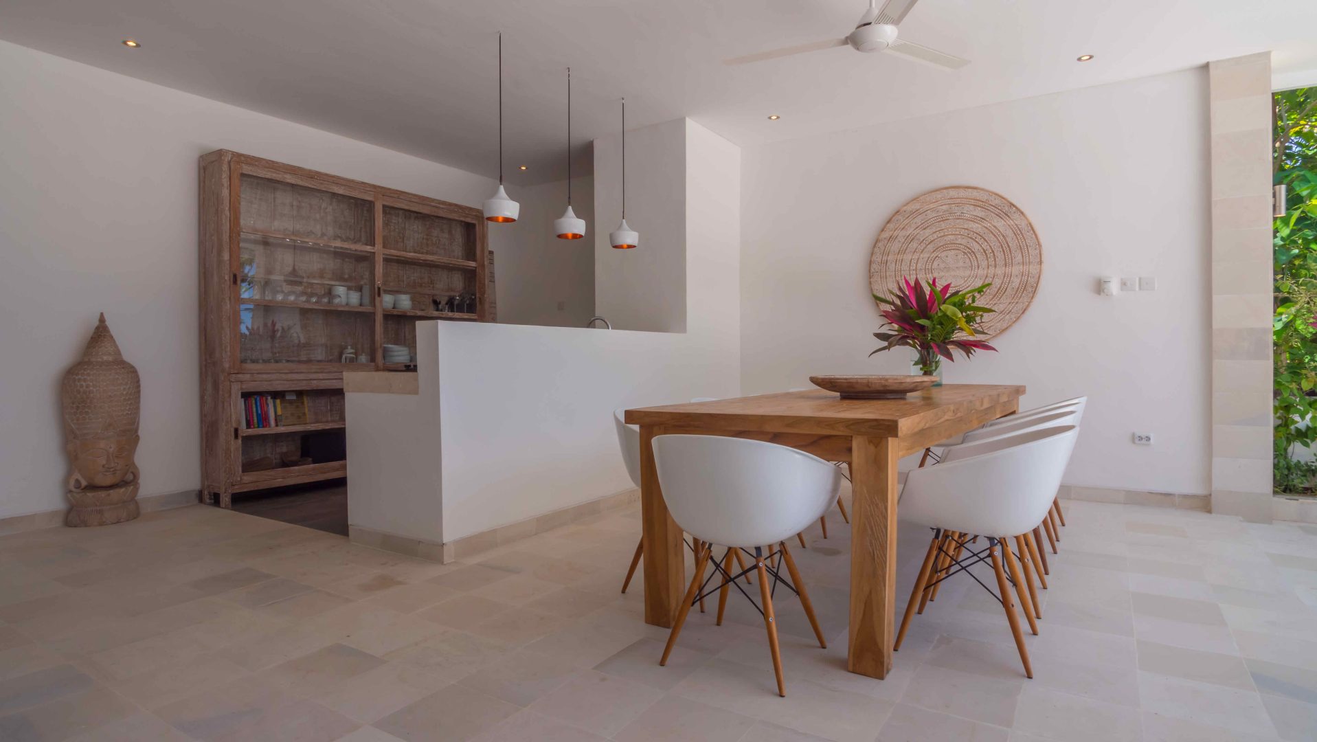 All bathrooms have a double sink, toilet, and shower. Given Baliβs wonderful weather, youβll likely spend most of your time outside. The spacious 100 mΒ² shaded terrace with a long dining table and a lounge area is a lovely place to relax. The open-plan living area and fully equipped kitchen provide a perfect blend of comfort and modern amenities.
